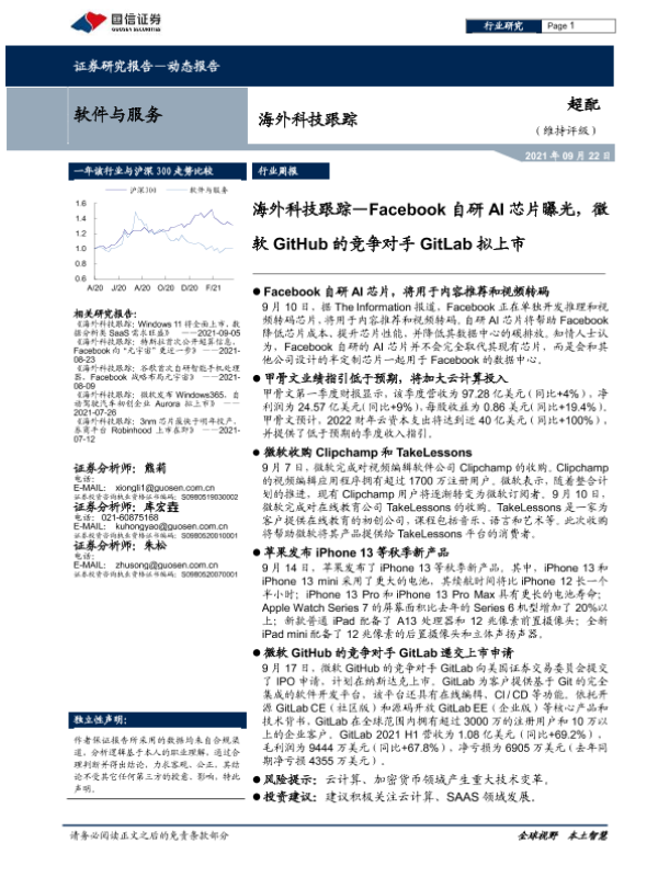 【国信证券】【20210922】海外科技跟踪:Facebook自研AI芯片曝光,微软GitHub的竞争对手GitLab拟上市-6页 行业研究