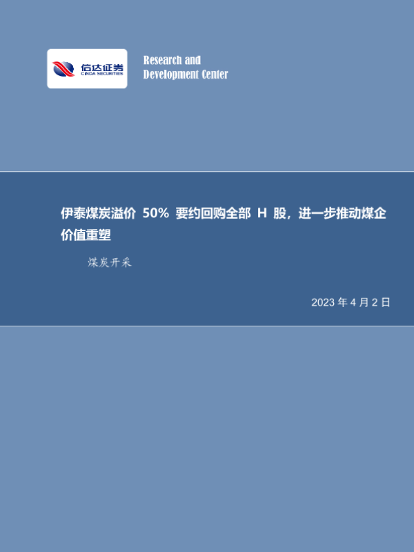 【信达证券】【20230402】20230402-信达证券-煤炭开采行业周报:伊泰煤炭溢价50%要约回购全部H股,进一步推动煤企价值重塑-30页 行业研究