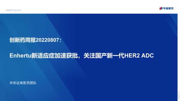 【华创证券】【20220807】创新药周报:Enhertu新适应症加速获批,关注国产新一代HER2 ADC-31页 行业研究