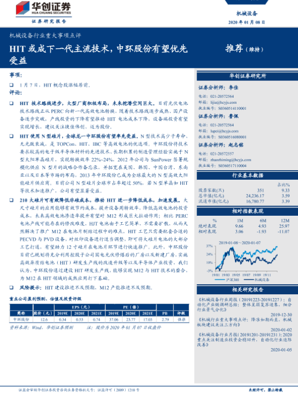 【华创证券】【20200108】20200108-华创证券-机械设备行业重大事项点评:HIT或成下一代主流技术,中环股份有望优先受益-4页 行业研究