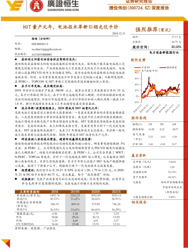 【广证恒生】【20191215】20191215-广证恒生证券研究所-捷佳伟创-300724.SZ-深度报告:HIT量产元年,电池技术革新引领光伏平价-31页 行业研究