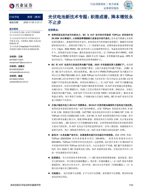 【兴业证券】【20250221】光伏电池新技术专题:积微成著,降本增效永不止步-23页 行业研究