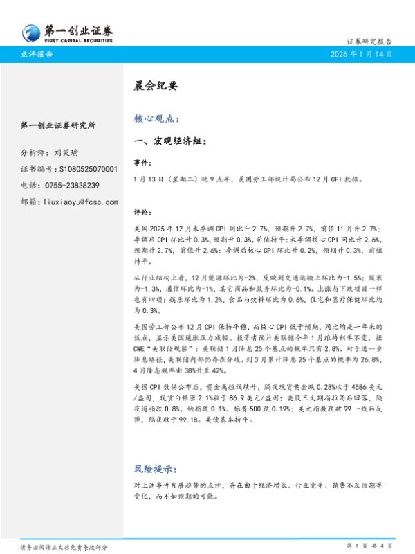 【第一创业证券】【202601】晨会纪要-4页 会议纪要