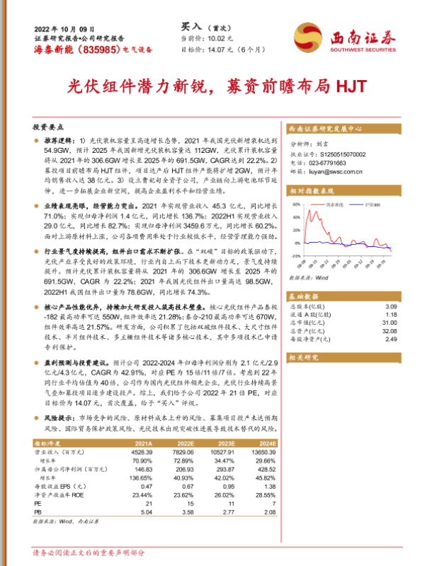 【西南证券】【20221009】光伏组件潜力新锐,募资前瞻布局HJT-29页 行业研究