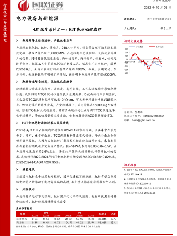 【国联证券】【20221009】电力设备与新能源行业HJT深度系列之一:HJT靶材崛起在即-30页 行业研究