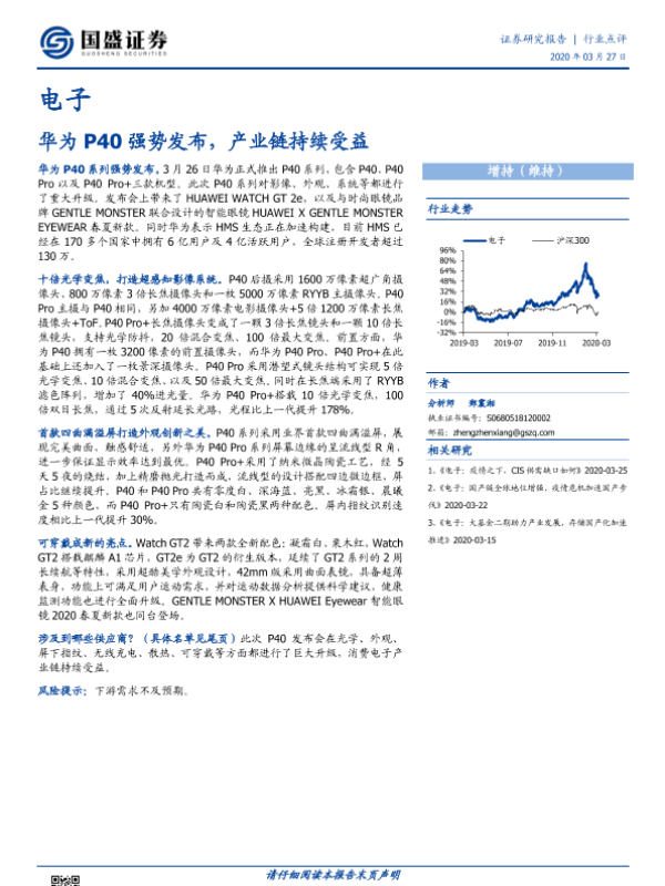 【国盛证券】【20200327】电子:华为P40强势发布,产业链持续受益-9页 行业研究