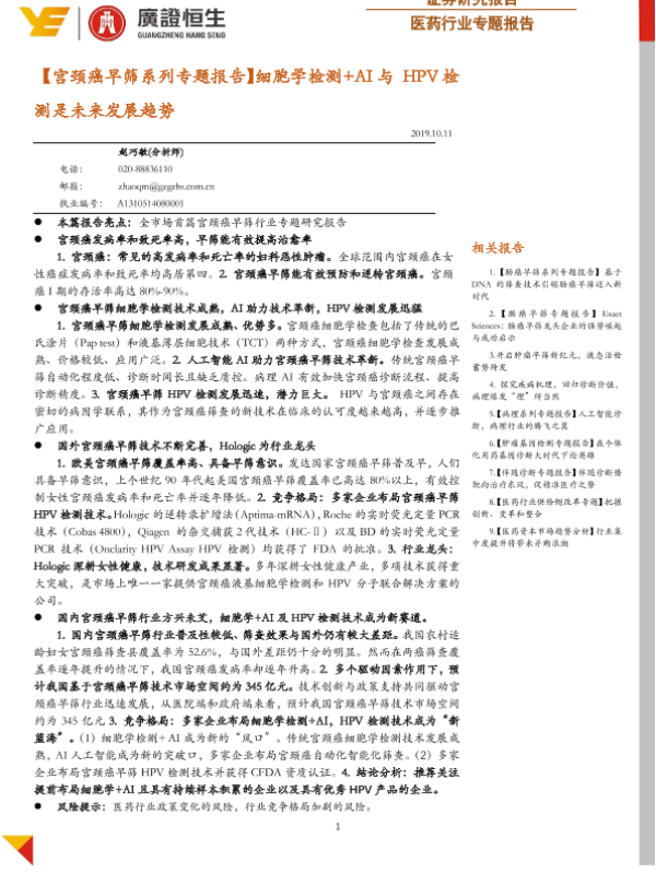【广证恒生】【20191011】宫颈癌早筛系列专题报告:细胞学检测+AI与HPV检测是未来发展趋势-28页 行业研究