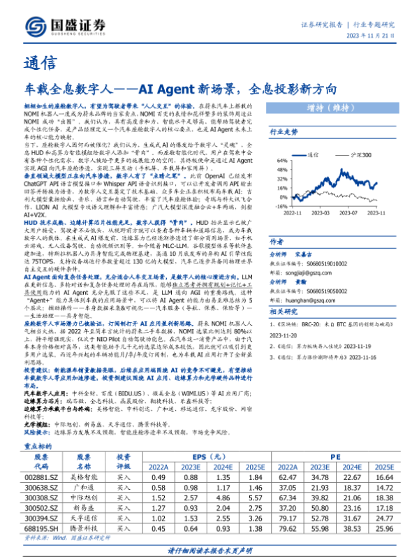 【国盛证券】【20231121】通信行业专题研究:车载全息数字人——AI Agent新场景,全息投影新方向-13页 行业研究