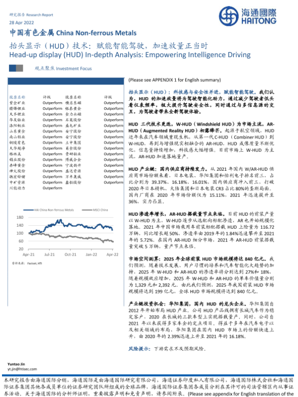 【海通国际】【20220428】中国有色金属行业:抬头显示(HUD)技术,赋能智能驾驶,加速放量正当时-25页 行业研究