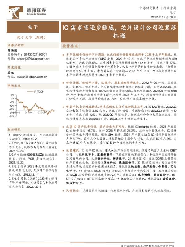 【德邦证券】【20221230】电子行业专题:IC需求望逐步触底,芯片设计公司迎复苏机遇-25页 行业研究