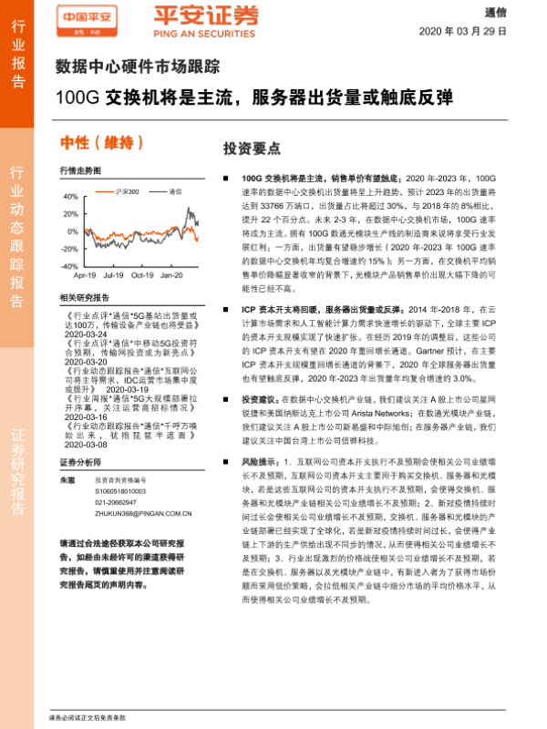 【平安证券】【20200329】通信:数据中心硬件市场跟踪-100G交换机将是主流,服务器出货量或触底反弹-7页 行业研究