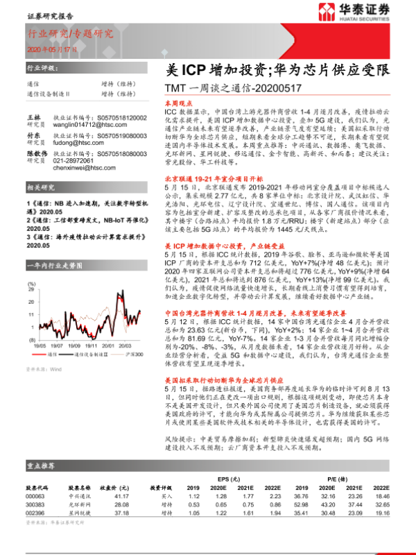 【华泰证券】【20200517】TMT一周谈之通信:美ICP增加投资;华为芯片供应受限-14页 行业研究