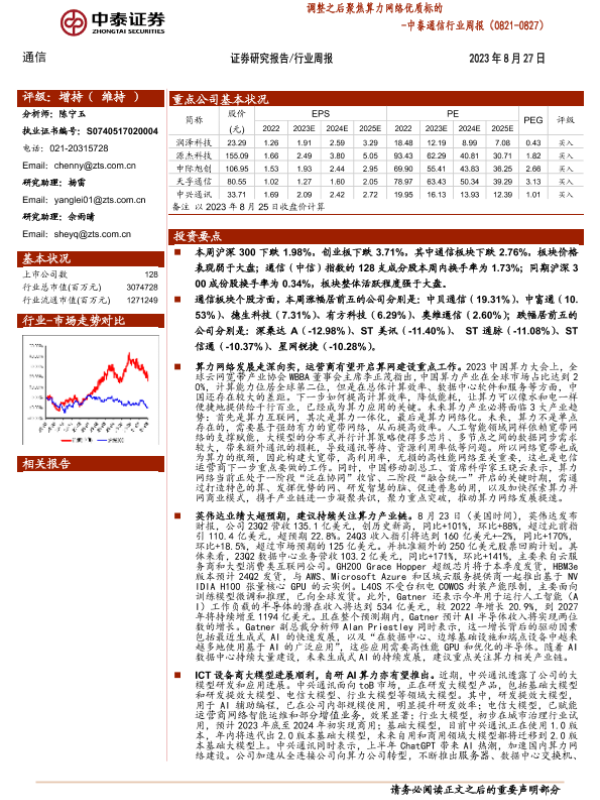 【中泰证券】【20230827】调整之后聚焦算力网络优质标的-16页 行业研究