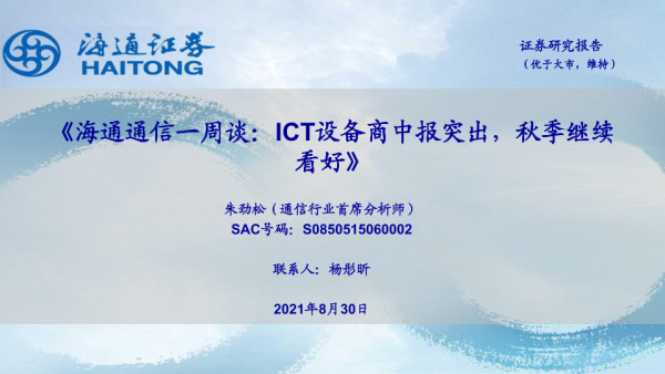 【海通证券】【20210830】海通通信一周谈:ICT设备商中报突出,秋季继续看好-11页 行业研究