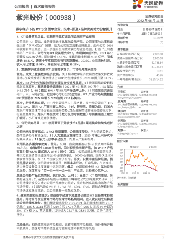 【天风证券】【20220511】20220511-天风证券-紫光股份-000938.SZ-数字经济下的ICT设备领军企业,技术+渠道+品牌优势助力份额提升-47页 行业研究