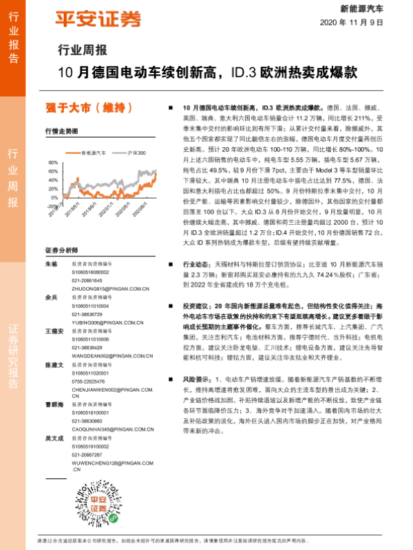 【平安证券】【20201109】20201109-平安证券-新能源汽车行业周报:10月德国电动车续创新高,ID.3欧洲热卖成爆款-9页 行业研究
