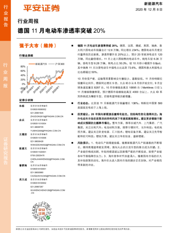 【平安证券】【20201208】20201208-平安证券-新能源汽车行业周报:德国11月电动车渗透率突破20%-10页 行业研究