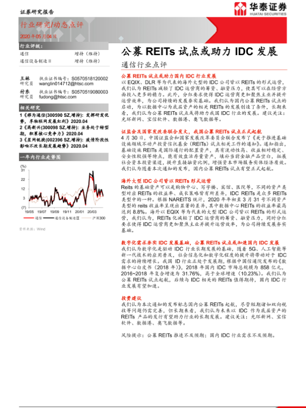 【华泰证券】【20200504】通信行业点评:公募REITs试点或助力IDC发展-3页 行业研究