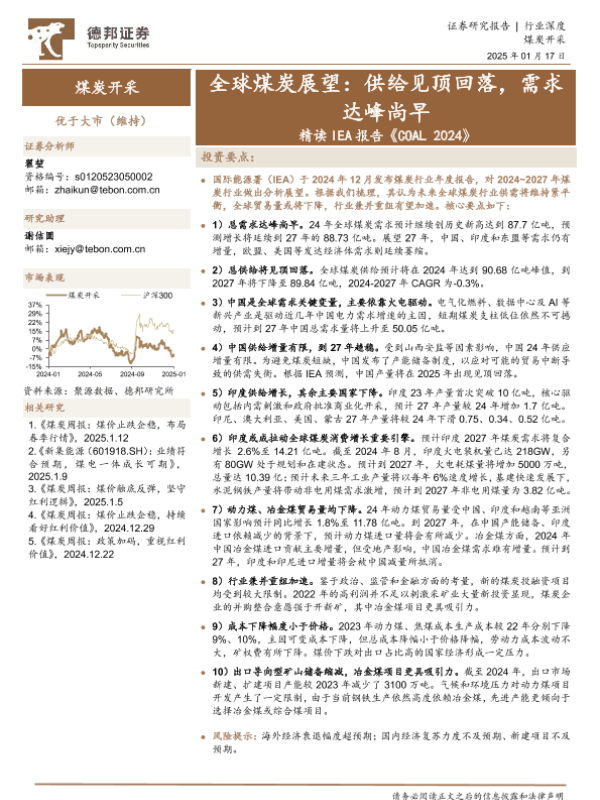 【德邦证券】【20250117】全球煤炭展望:精读IEA报告《COAL 2024》-供给见顶回落,需求达峰尚早-68页 行业研究