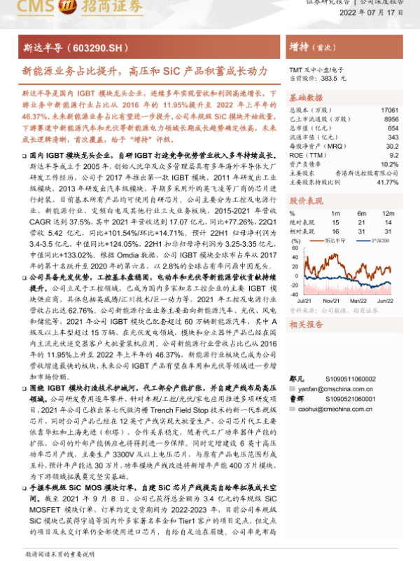 【海通证券】【20220717】斯达半导-新能源业务占比提升,高压和SiC产品积蓄成长动力-23页 公司研究