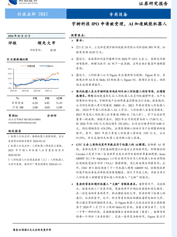 【财信证券】【202603】专用设备_宇树科技IPO申请被受理_AI加速赋能机器人-3页 证券期货研究报告