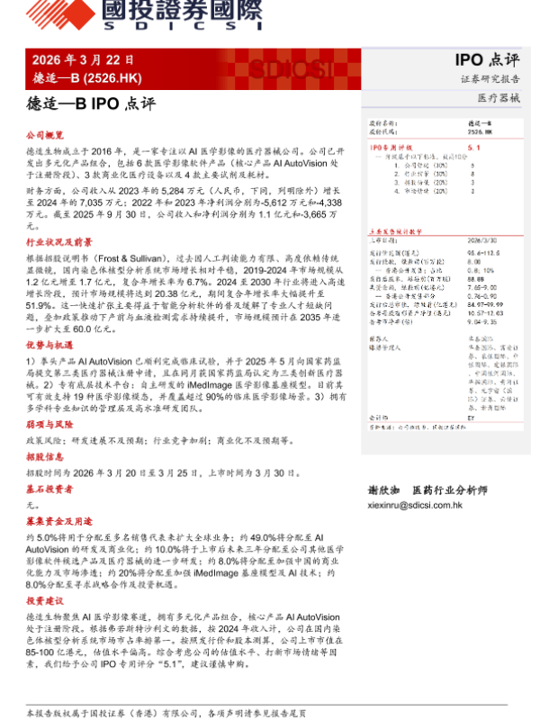【国投证券(香港)有限公司】【202603】德适— B IPO点评-2页 证券期货研究报告