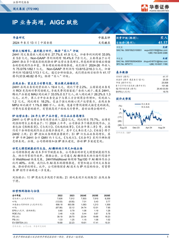 【华泰证券】【2024】IP业务高增,AIGC赋能-7页 行业研究
