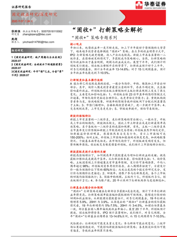 【华泰证券】【20200724】“固收+”打新策略全解析-26页 行业研究