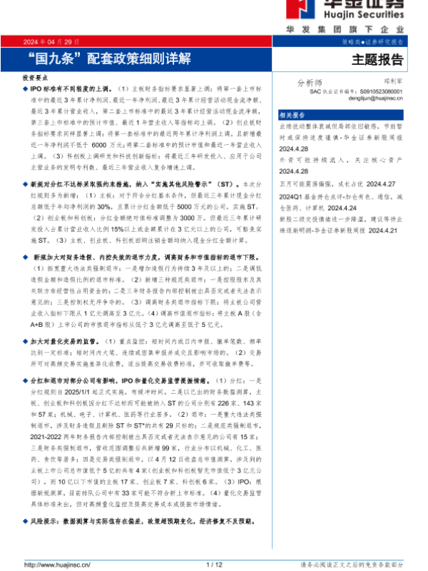 【华金证券】【20240429】主题报告:“国九条”配套政策细则详解-12页 行业研究