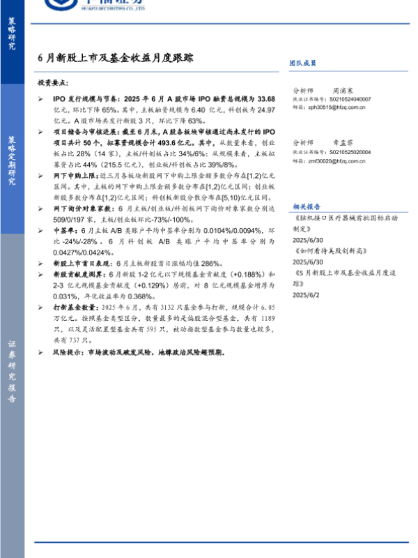 【华福证券】【202506】6月新股上市及基金收益月度跟踪-10页 证券期货研究报告