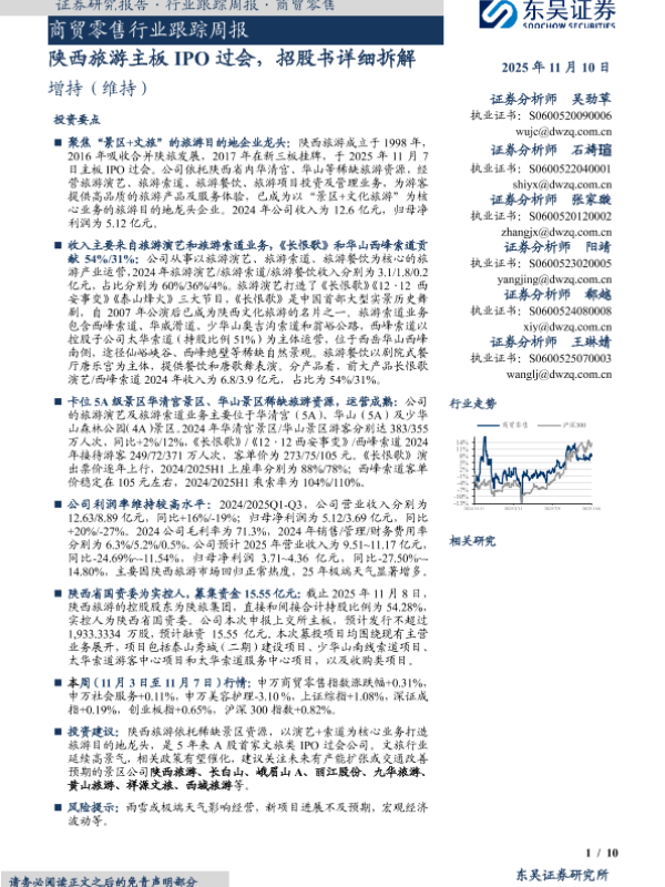 【东吴证券】【202511】商贸零售行业跟踪周报·陕西旅游主板 IPO过会,招股书详细拆解-10页 证券期货研究报告