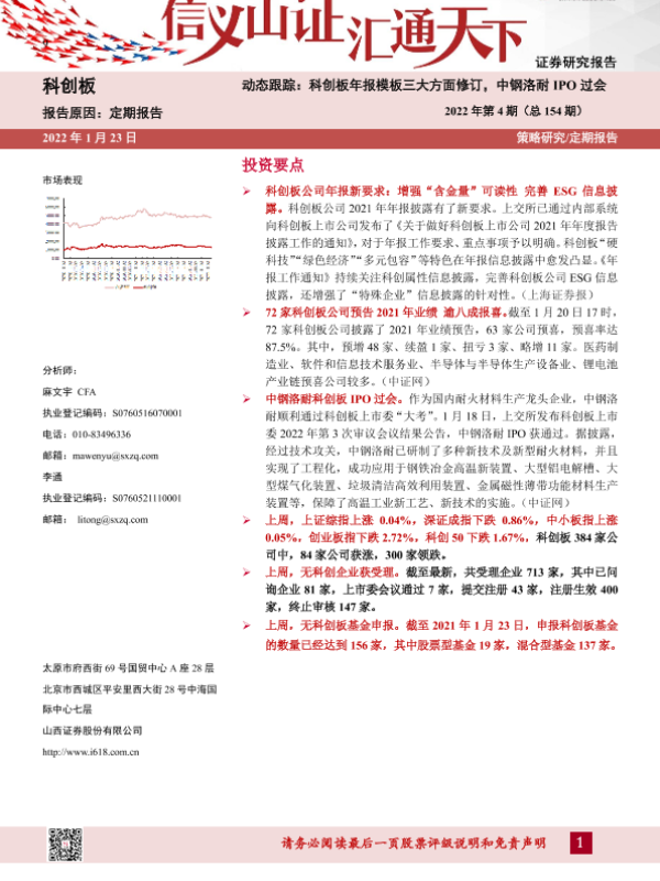 【山西证券】【20220123】动态跟踪2022年第4期(总154期):科创板年报模板三大方面修订,中钢洛耐IPO过会-23页 行业研究