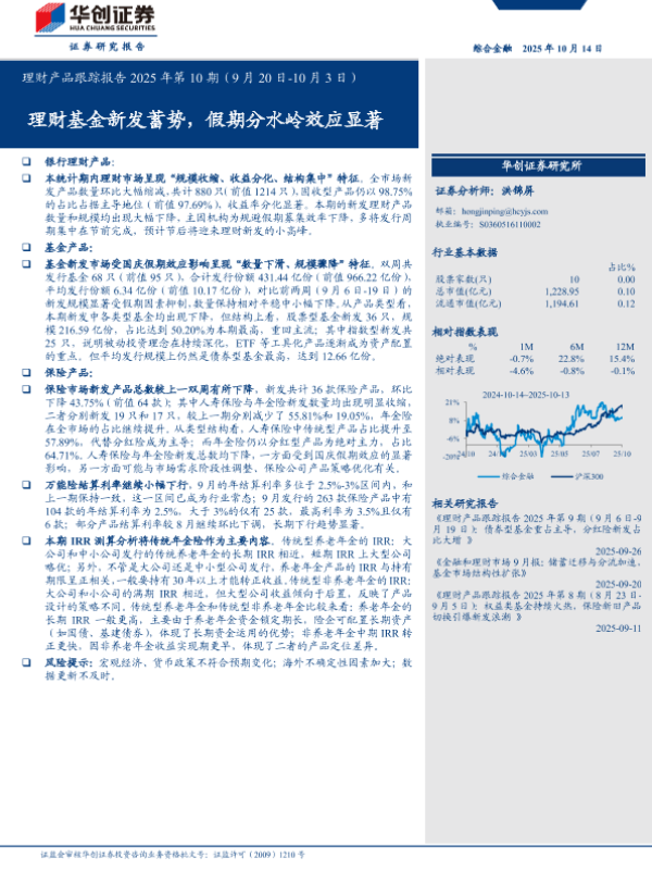 【华创证券】【202510】理财产品跟踪报告2025年第11期(10月4日-10月17日):节后新发尚未回暖,保险市场结构性转型-15页 证券期货研究报告