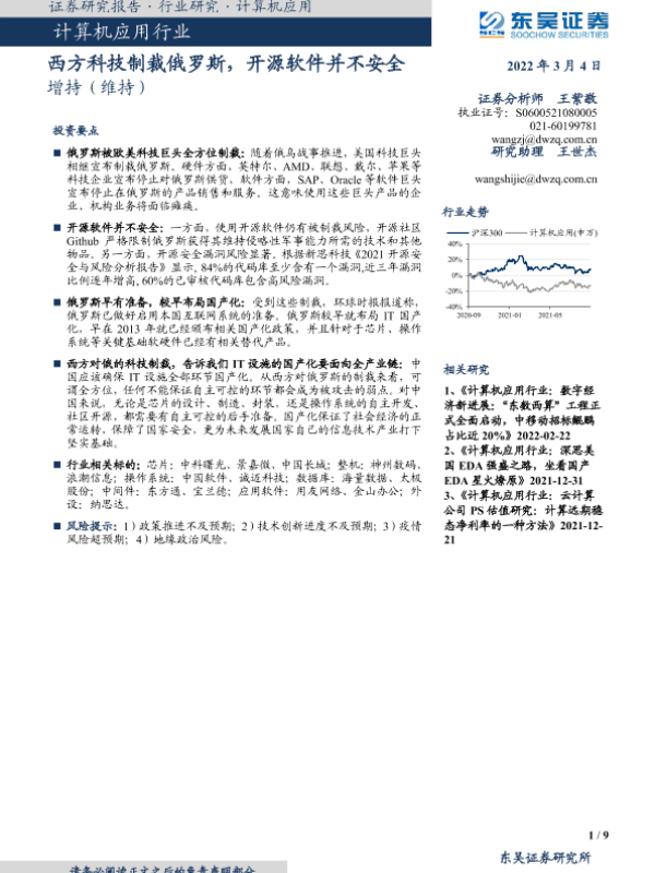 【东吴证券】【20220304】西方科技制裁俄罗斯,开源软件并不安全-9页 行业研究