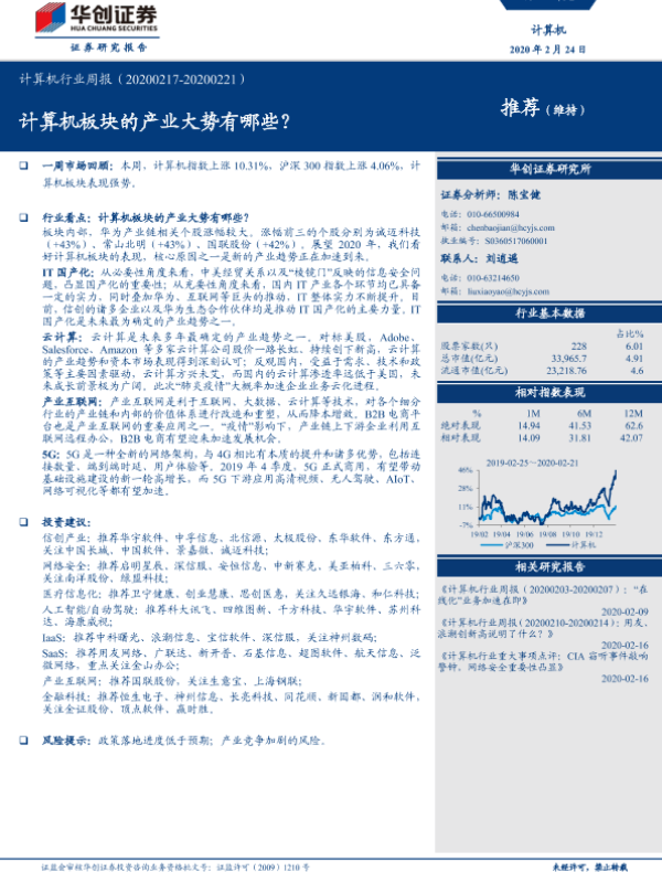 【华创证券】【20200224】20200224-华创证券-计算机行业周报:计算机板块的产业大势有哪些?-18页 行业研究