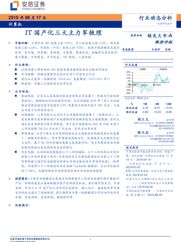 【安信证券】【20190817】计算机行业动态分析:IT国产化三大主力军梳理-20页 行业研究