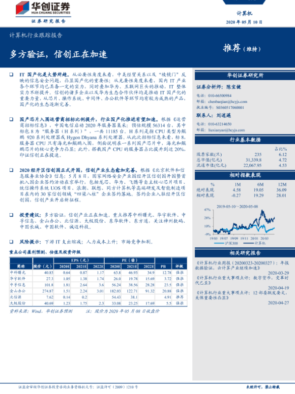 【华创证券】【20200510】20200510-华创证券-计算机行业跟踪报告:多方验证,信创正在加速-3页 行业研究