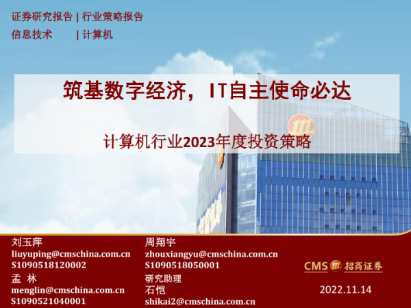【海通证券】【20221114】计算机行业2023年度投资策略:筑基数字经济,IT自主使命必达-50页 行业研究