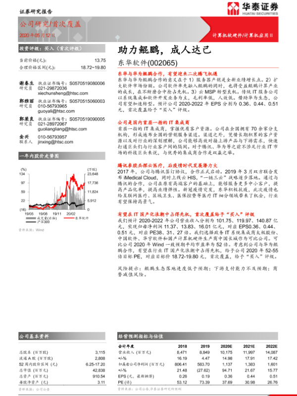 【华泰证券】【20200512】20200512-华泰证券-东华软件-002065.SZ-助力鲲鹏,成人达己-22页 行业研究