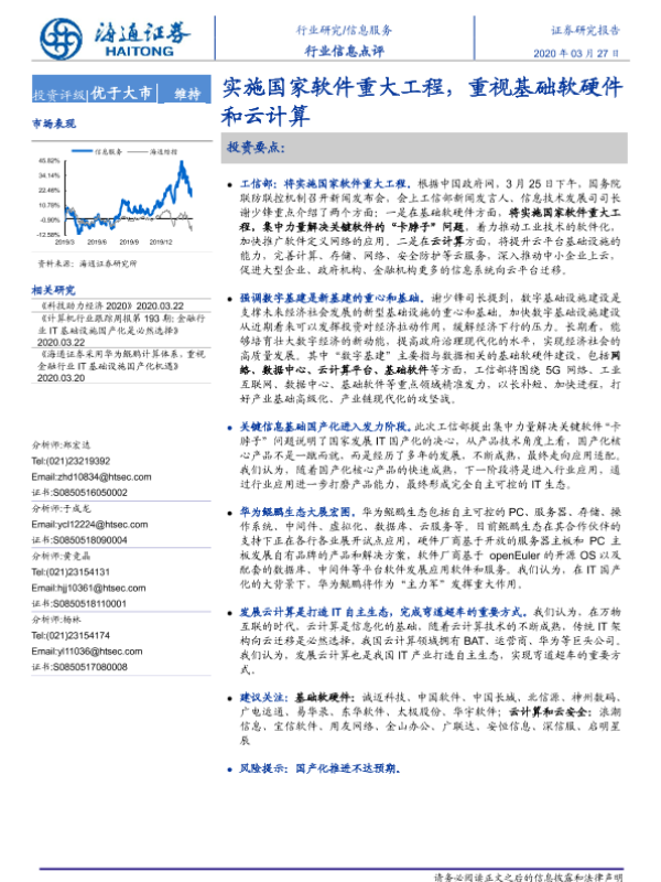 【海通证券】【20200327】信息服务行业信息点评:实施国家软件重大工程,重视基础软硬件和云计算-2页 行业研究