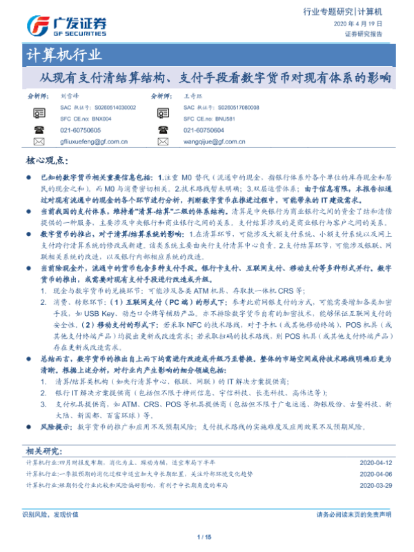 【广发证券】【20200419】从现有支付清结算结构、支付手段看数字货币对现有体系的影响-15页 行业研究