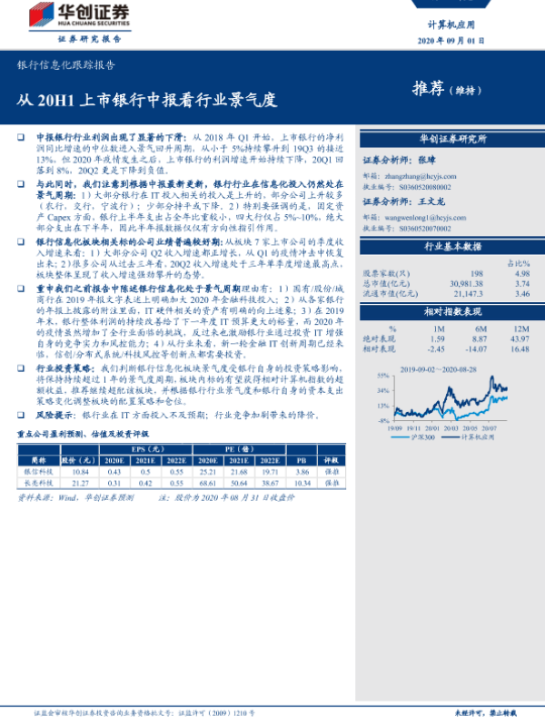 【华创证券】【20200901】从20H1上市银行中报看行业景气度-7页 行业研究