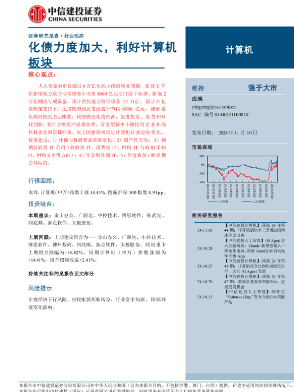 【中信建投证券】【20241110】2024年11月22日更新-【中信建投】计算机行业动态:化债力度加大,利好计算机板块-11页 行业研究