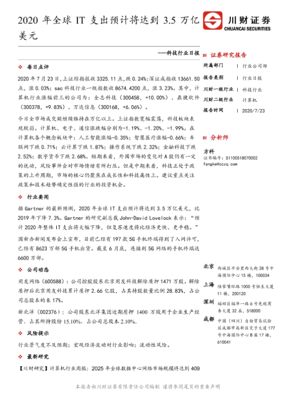 【川财证券】【20200723】科技行业日报:2020年全球IT支出预计将达到3.5万亿美元-3页 证券期货研究报告