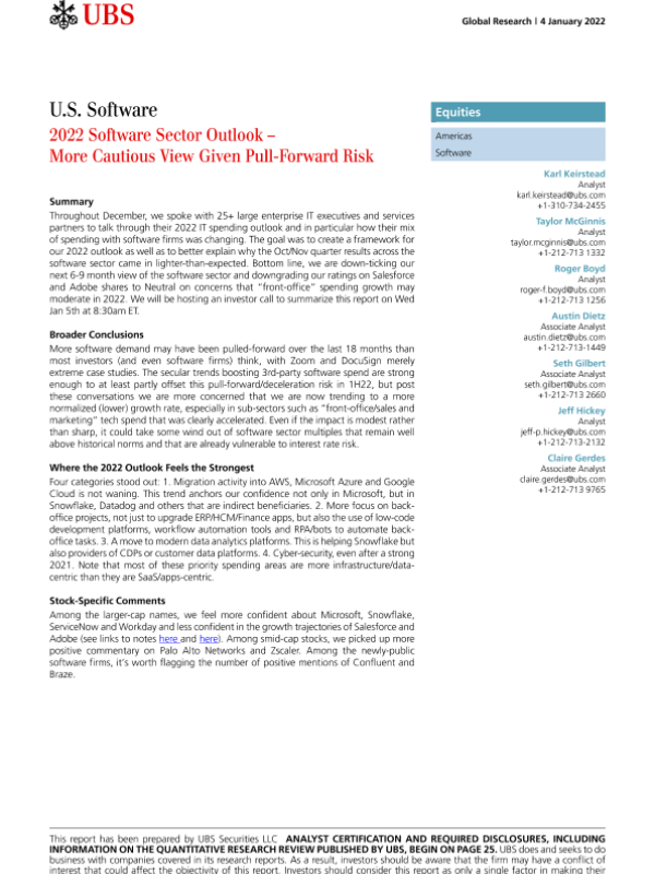 【瑞银】【20220104】2022年软件行业展望:考虑到远期风险,观点更加谨慎-33页 行业研究