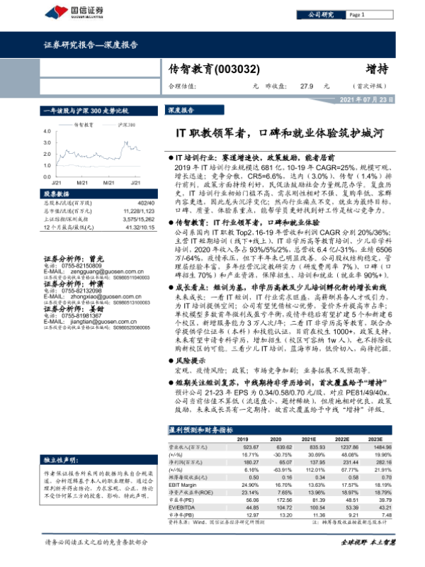 【国信证券】【20210723】传智教育-003032.SZ-IT职教领军者,口碑和就业体验筑护城河-37页 行业研究