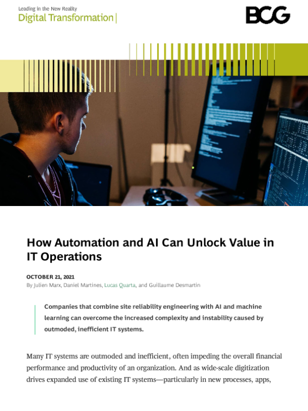 【Boston Consulting Group】【202110】How Automation and AI Can Unlock Value in IT Operations-14页 行业研究