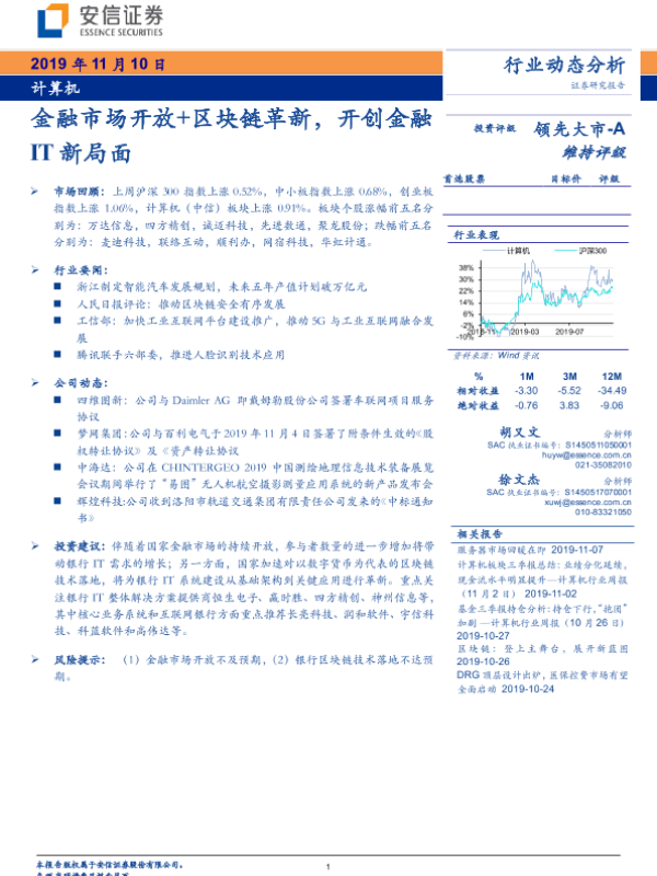 【安信证券】【20191110】计算机行业动态分析:金融市场开放+区块链革新,开创金融IT新局面-20页 行业研究