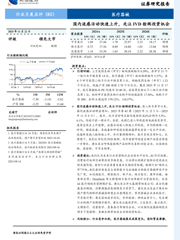 【财信证券】【202511】医疗器械行业月度点评:国内流感活动快速上升,关注IVD检测投资机会-12页 证券期货研究报告
