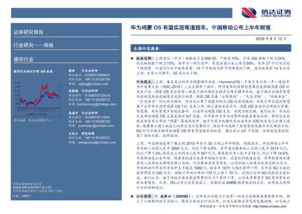【信达证券】【20190812】通信行业:华为鸿蒙OS有望实现弯道超车,中国移动公布上半年财报-15页 行业研究